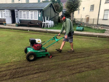 Last week the green received a liberal spreading of lawn sand to knock back the moss and provide a feed for the grass. Then this week some of the main autumn renovations took place.
